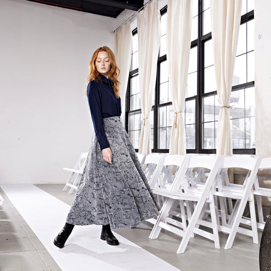 Round Neck Cable Knit Sweater IN: Grey Blue