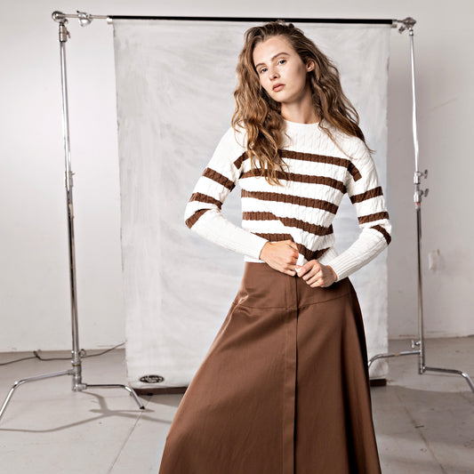 Cable Stripe Sweater IN: Caramel