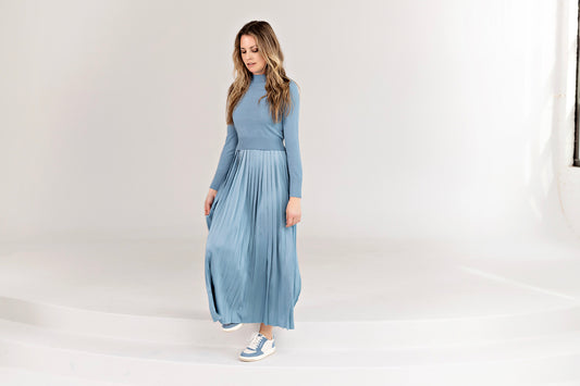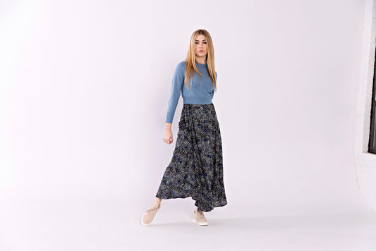 Signature Summer Color Block Circle Midi Skirt IN: Slate Blue