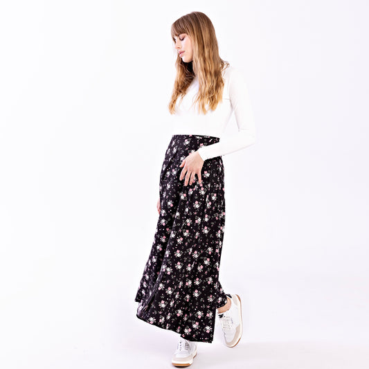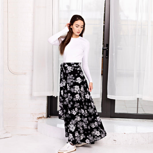 Signature Summer Silk Circle Midi Skirt IN: Black
