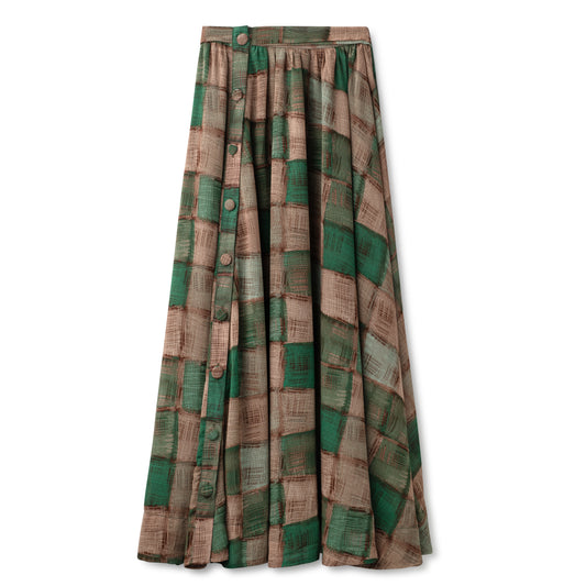 Button Down Plaid Print Skirt IN: Green Brown Plaid