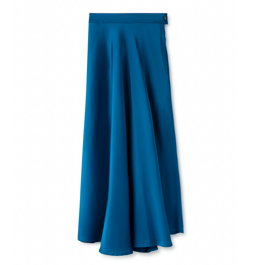 Signature Summer Silk Circle Midi Skirt IN: Deep Blue Teal