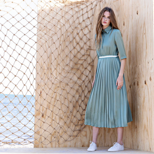 Stripe Pleated Dress IN: Sage