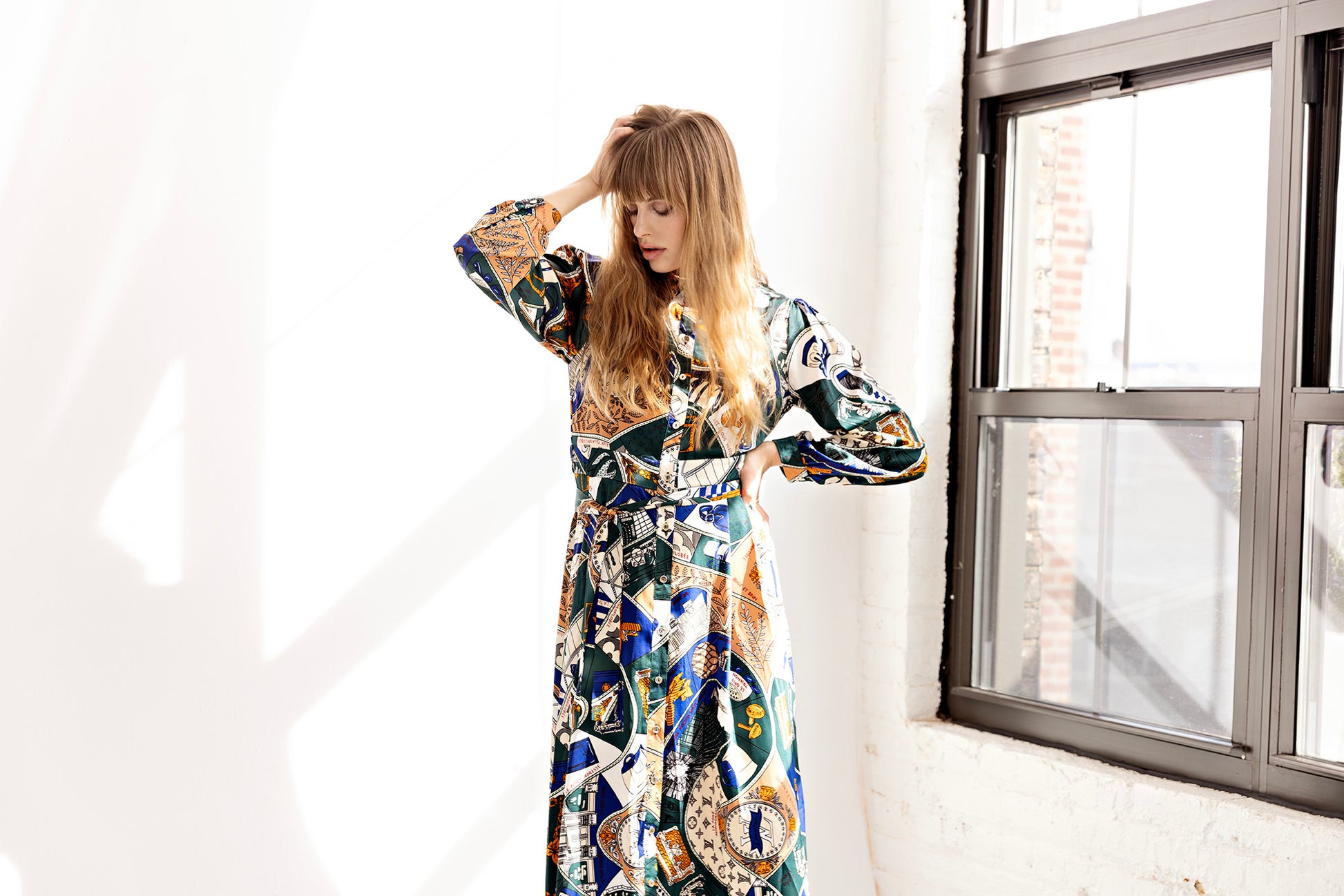 This shirt dress is a designer-inspired cut, its midi length creates a sophisticated look. The dress pairs perfectly with a tie cardigan for added warmth and style.