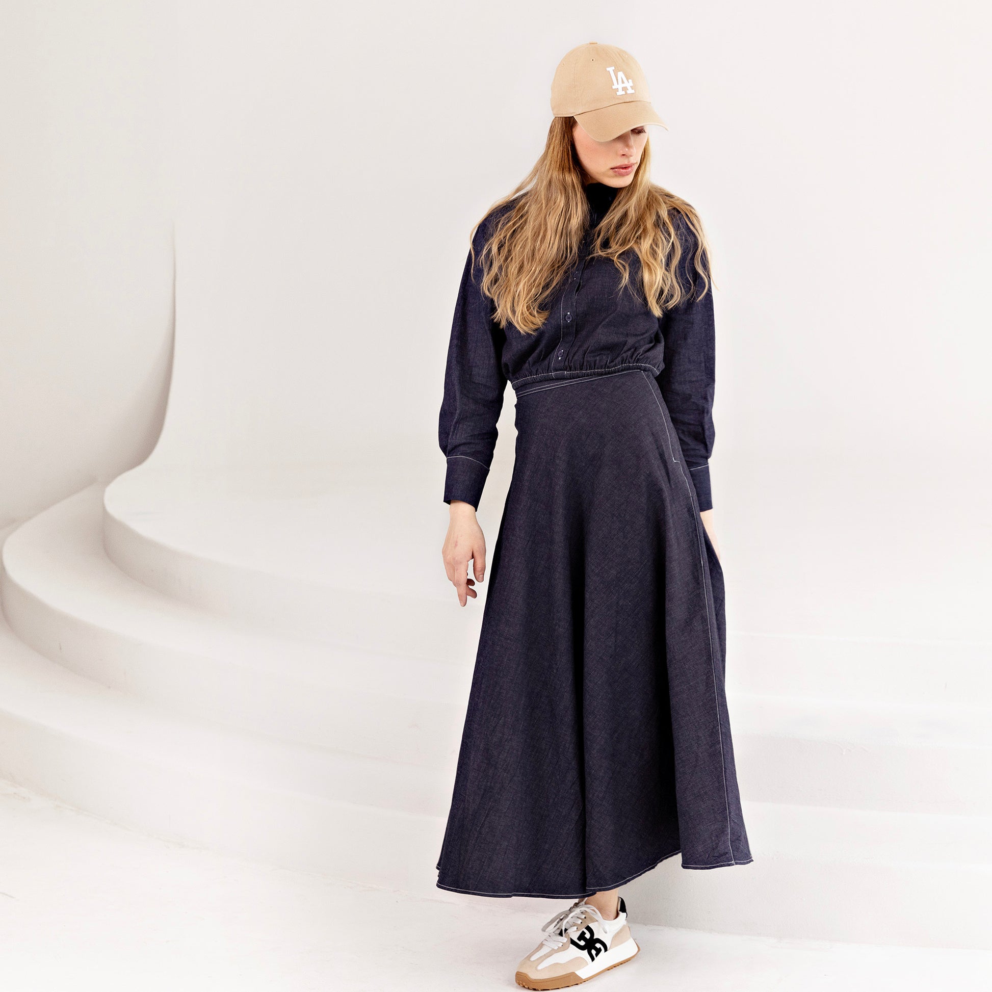 Signature Summer Circle Midi Skirt IN: Blue Denim