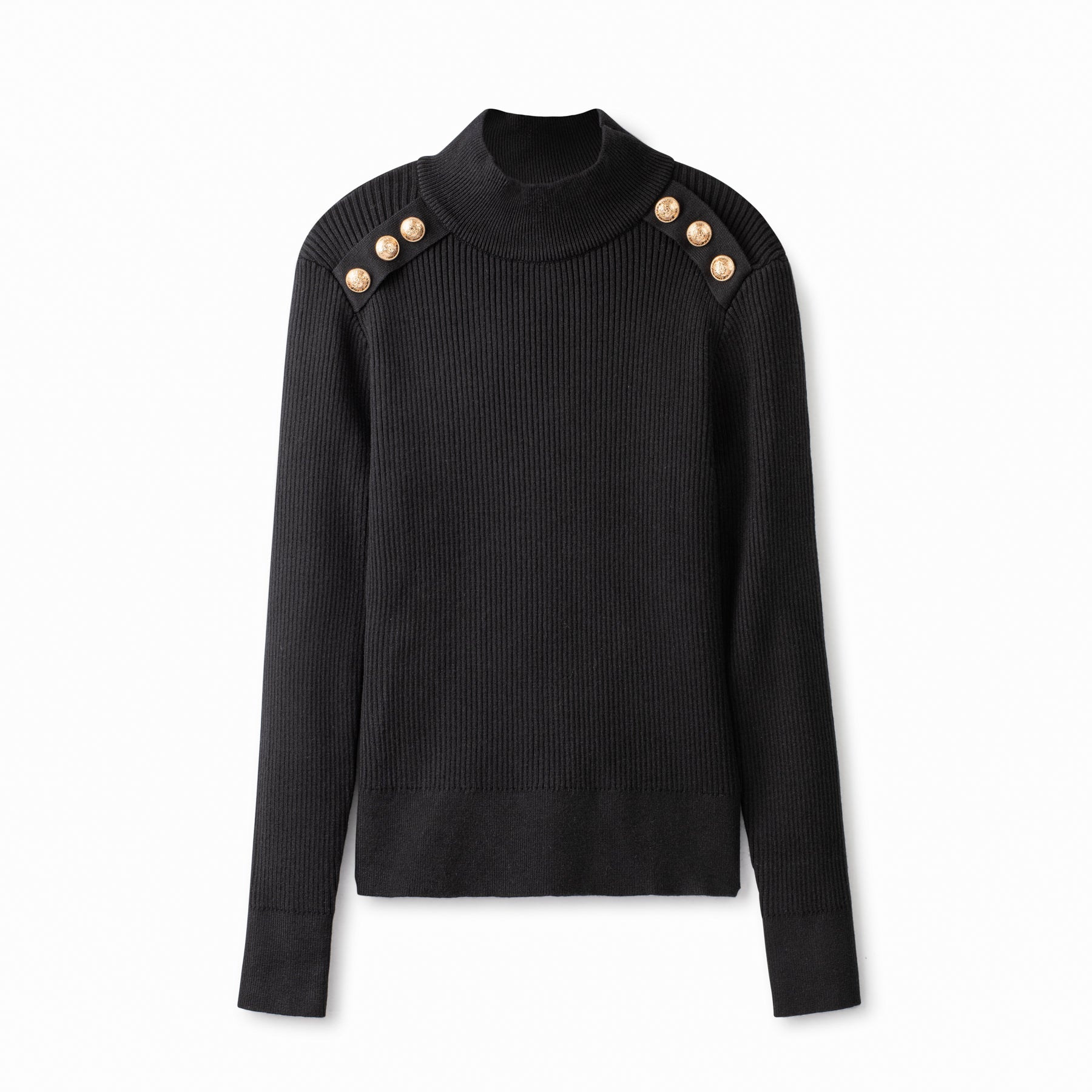 Enhance your wardrobe with a touch of luxury with this designer inspired Mock Neck. The gold button details give the piece an elegant and sophisticated look, perfect for any occasion. Crafted with high-end materials, this piece is sure to be an instant classic.