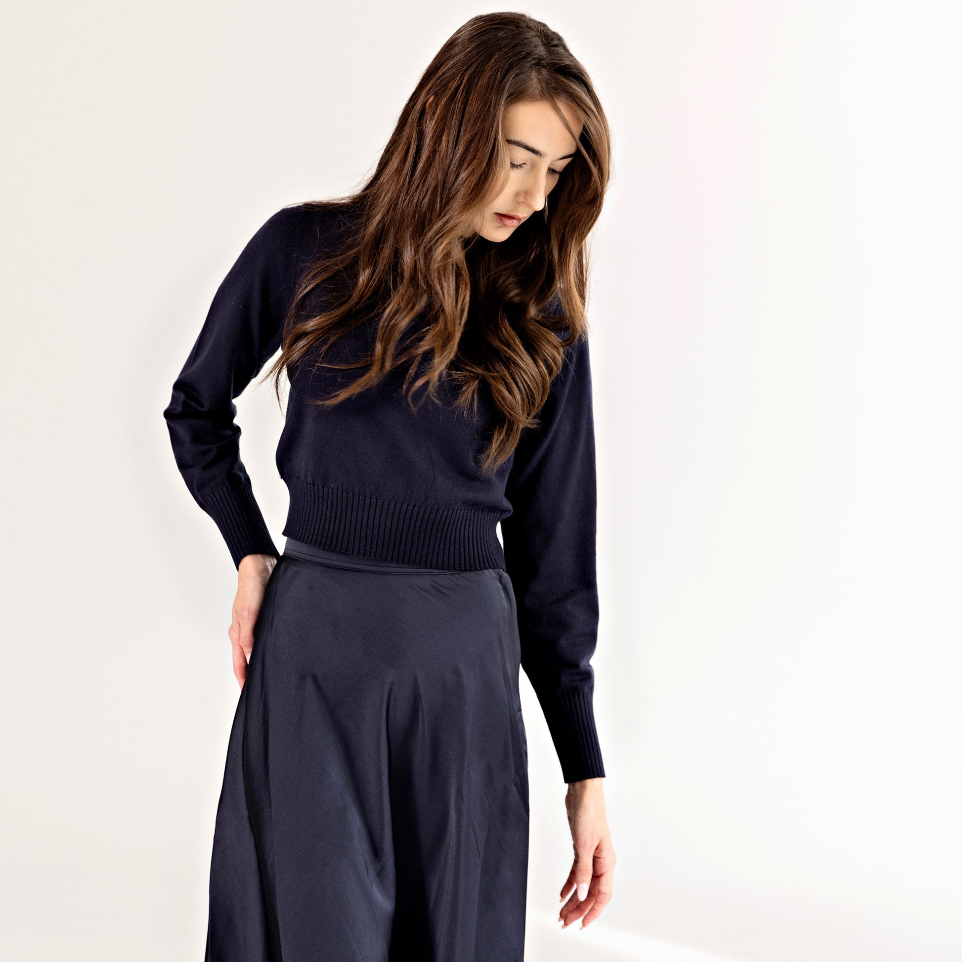 Signature Summer Silk Circle Midi Skirt IN: Navy