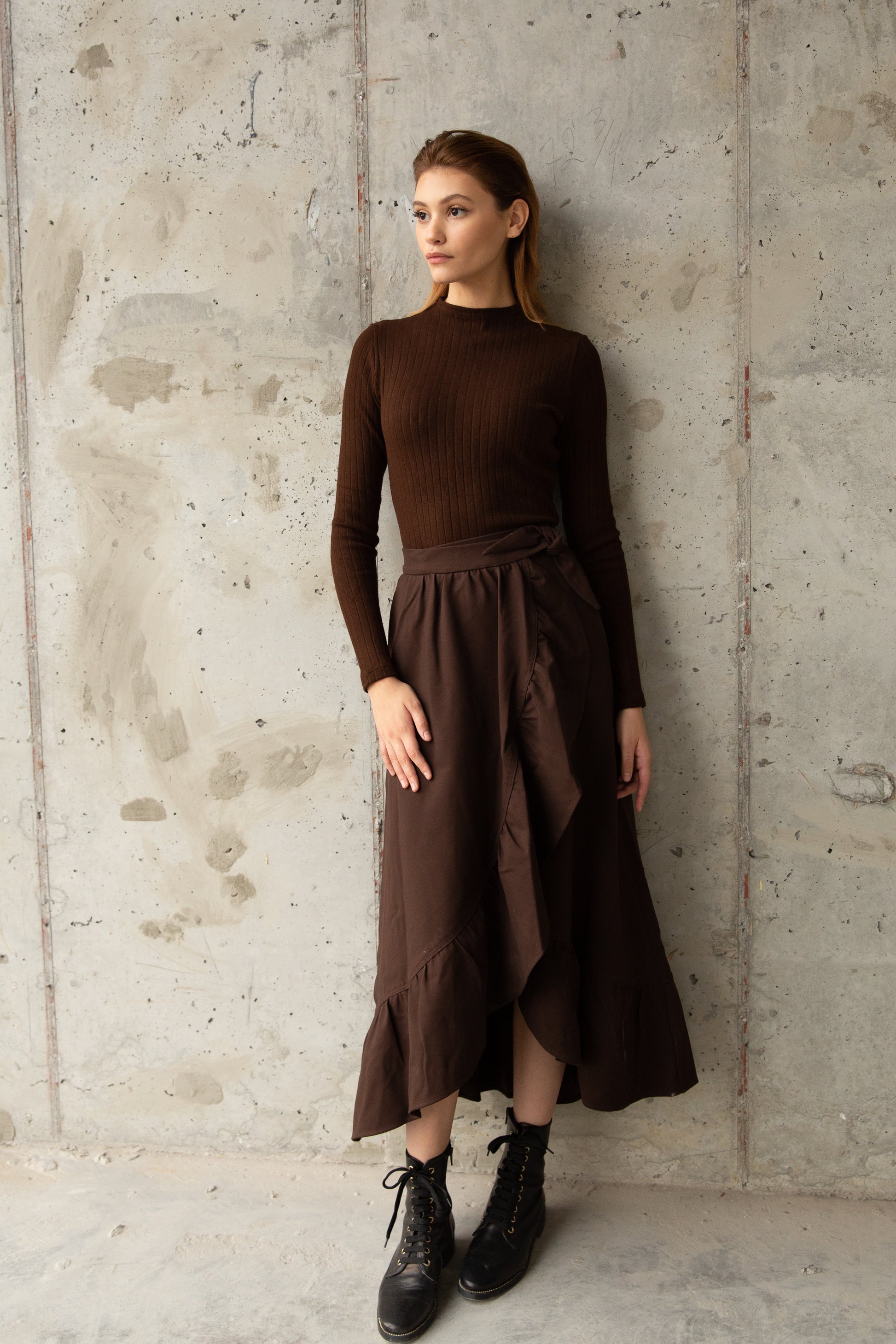 Ponte Wrap Skirt Chocolate