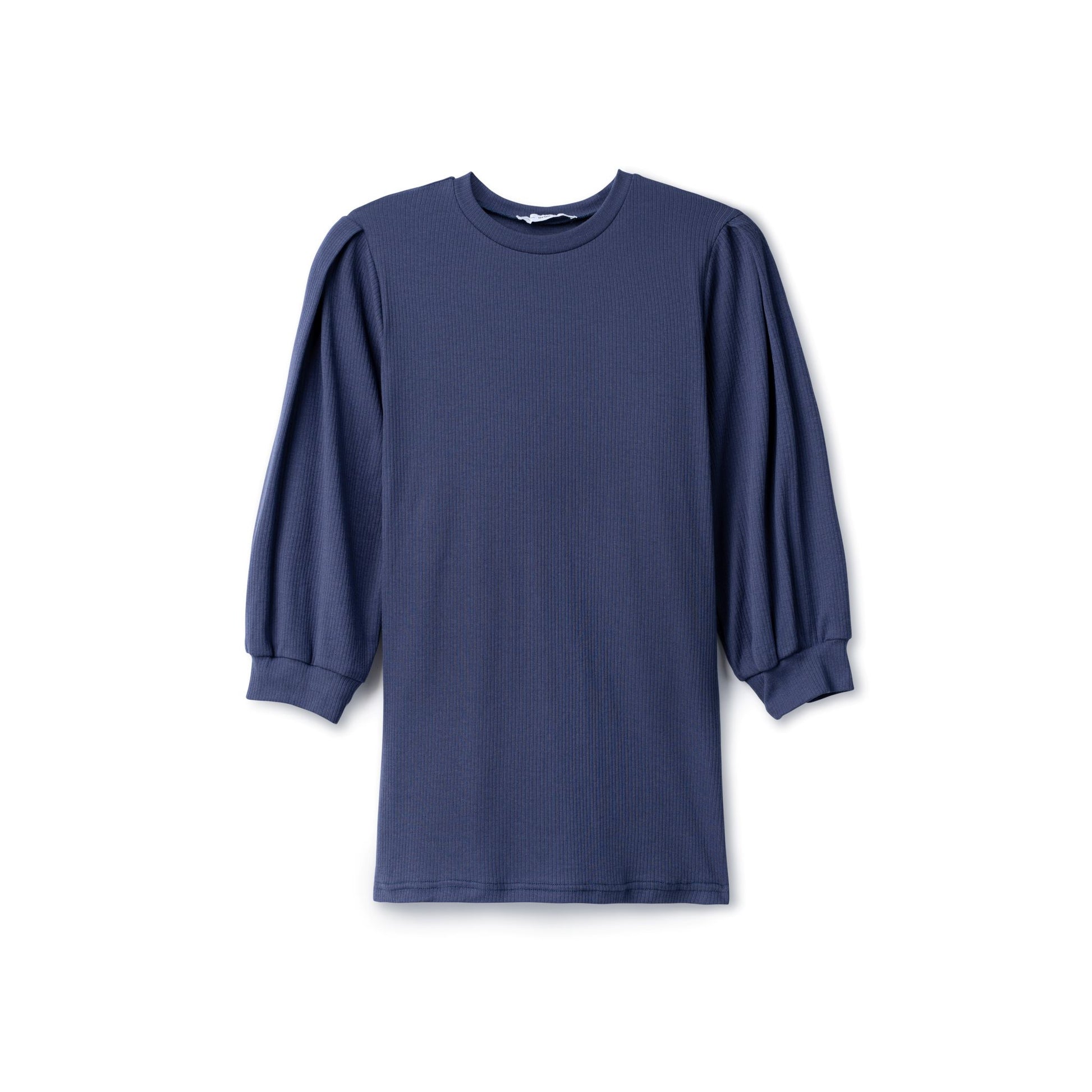 The Puff Sleeve T-shirt is cut from a soft ribbed cotton. The puffed 3/4 sleeves lends an edgy touch to a basic wardrobe staple.