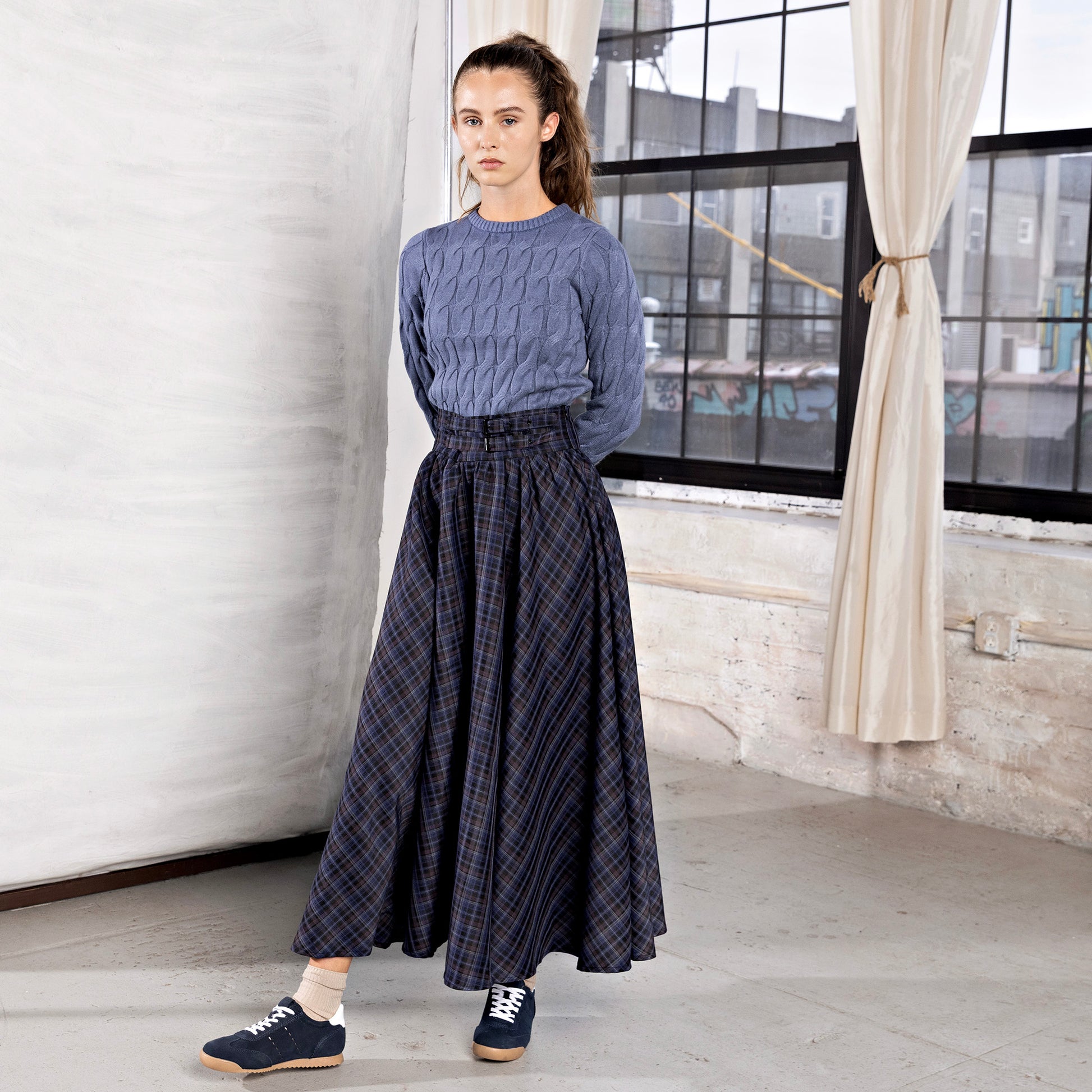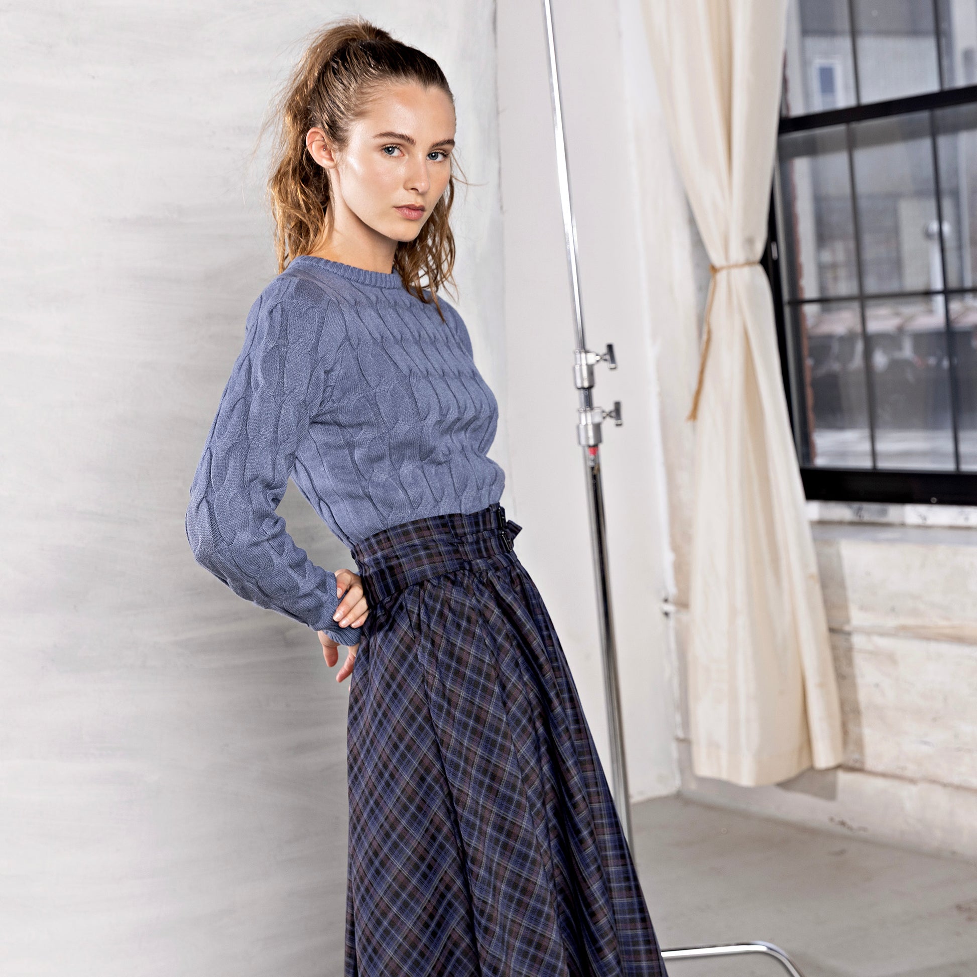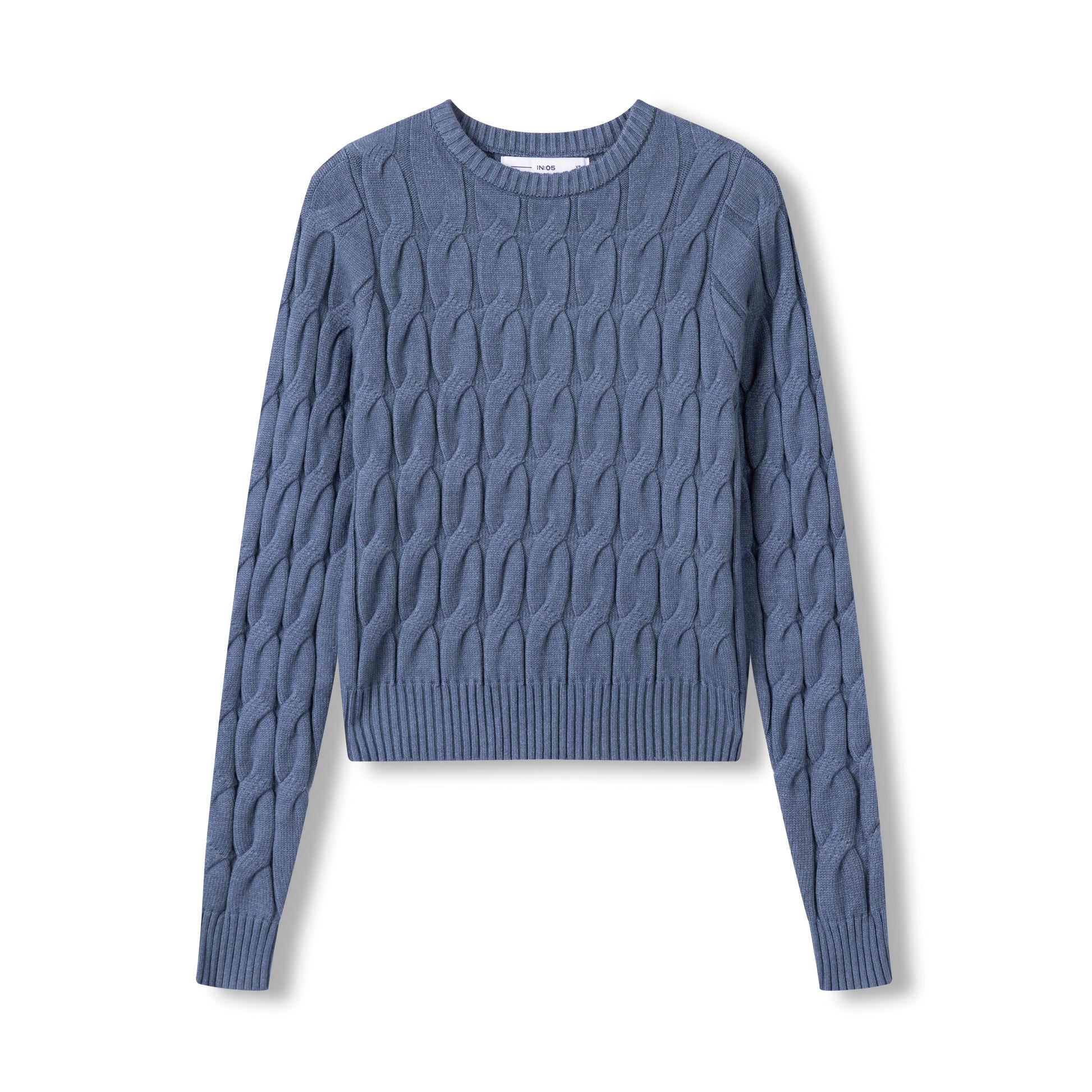 Round Neck Cable Knit Sweater IN: Grey Blue