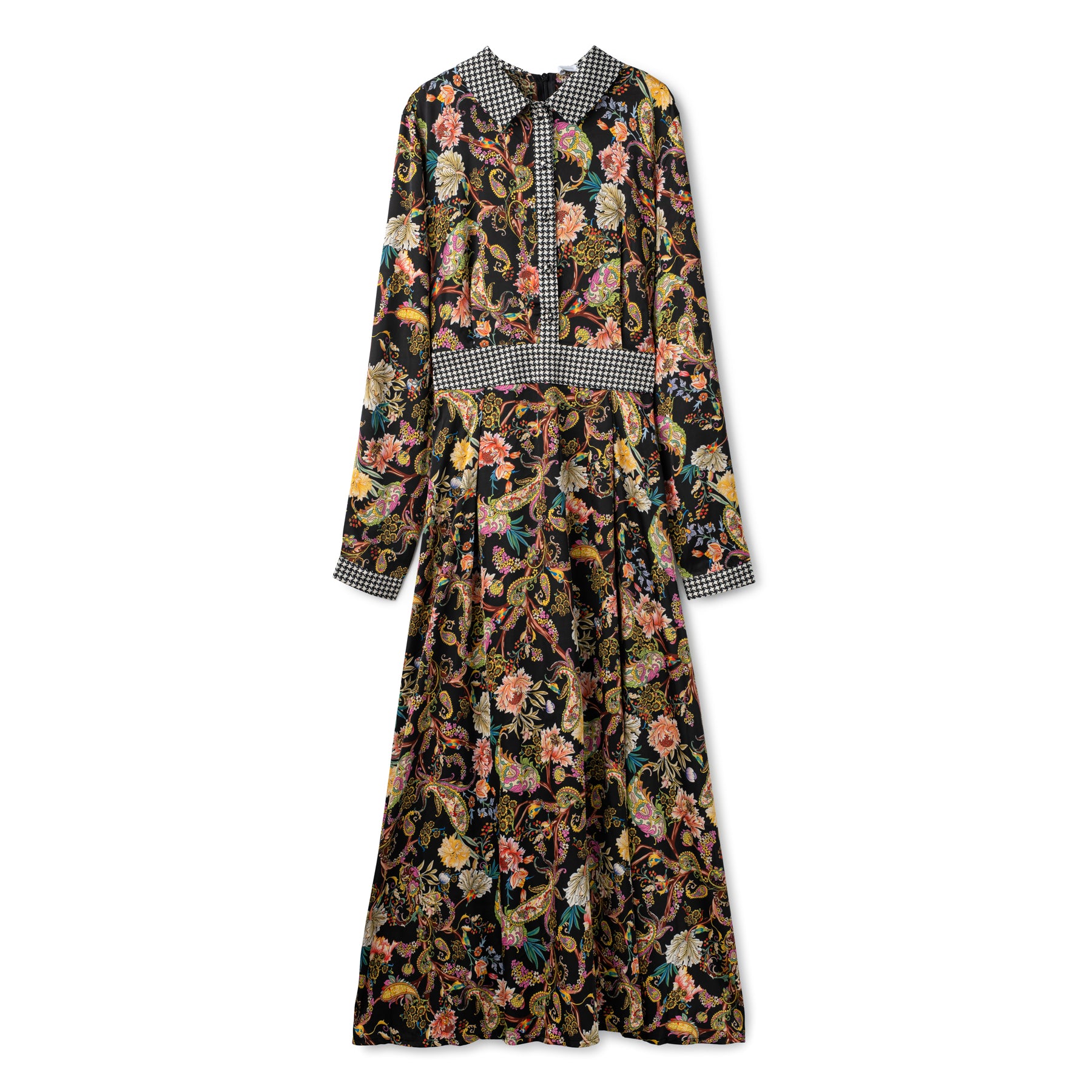 Designed with a sleek silhouette, this Silk Printed Dress offers a contrasting print, and a soft feel to maximize your comfort. For a smart finished look, layer with the black vest.