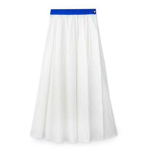 The Waistband Skirt features voluminous fine cotton, a contrasting waistband with delicate matte button details.
